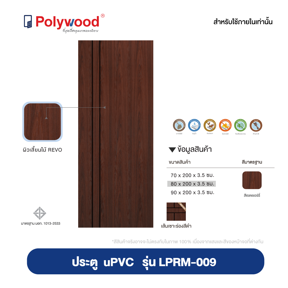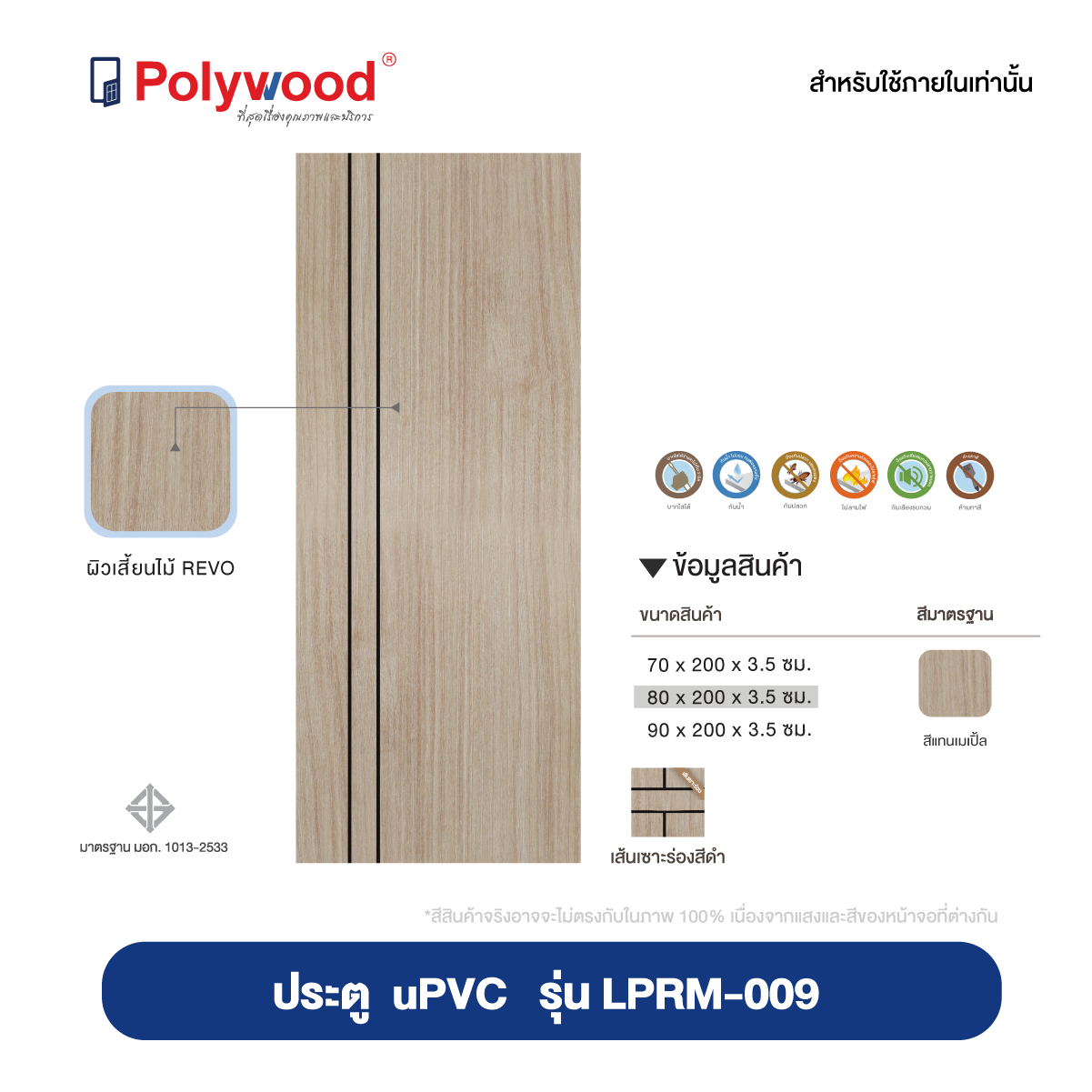 “ประตู uPVC รุ่น REVO LPRM บานฌซาะร่อง ผิวเสี้ยนไม้ สำหรับใชัภายใน
