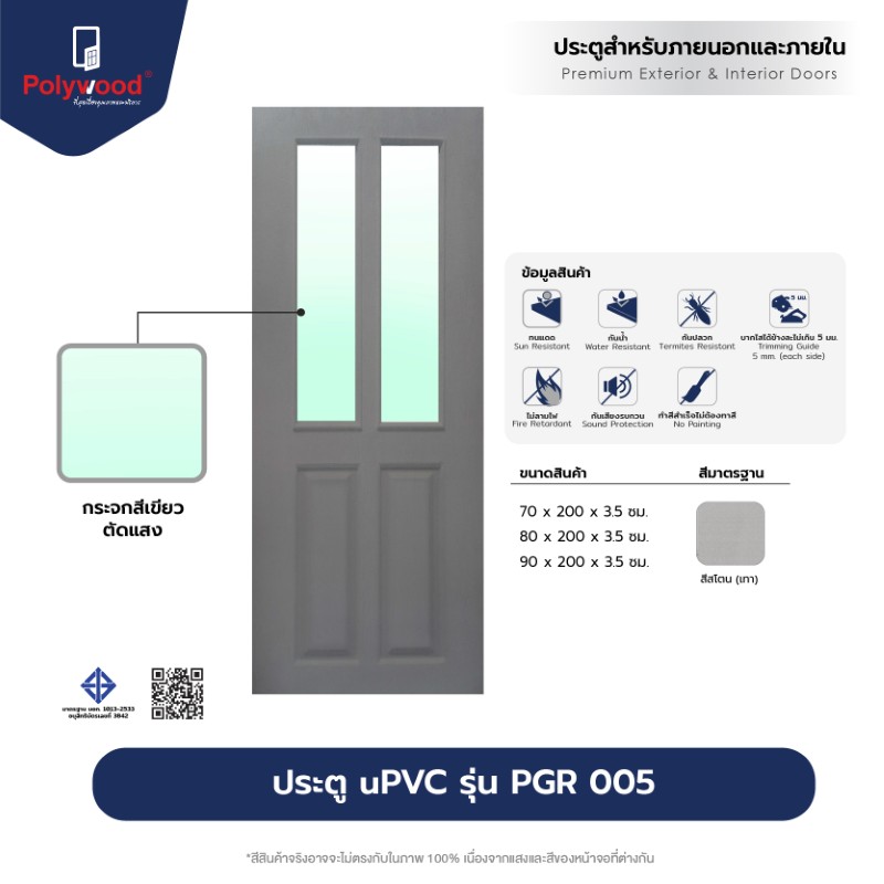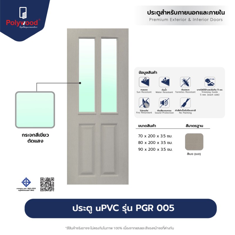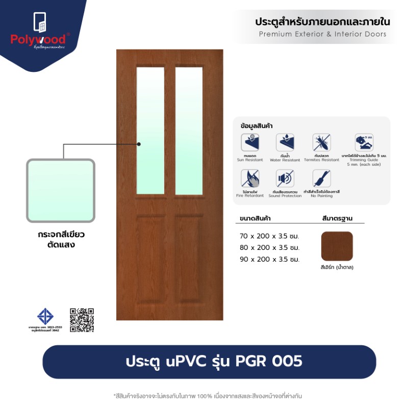 “ประตู uPVC ภายนอก รุ่น Revo-series : PGR-005 บานกระจก ผิวเสี้ยนไม้