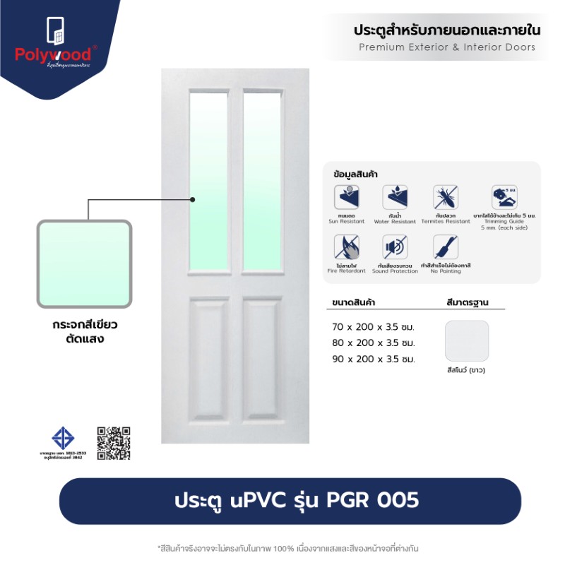• ใช้งานได้ทั้งเป็นประตูภายนอก ประตูภายใน และประตูห้องน้ำ