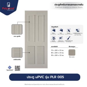 “ประตู uPVC ภายนอก รุ่น Revo-series : PLR-005 บานเกล็ด ผิวเสี้ยนไม้
