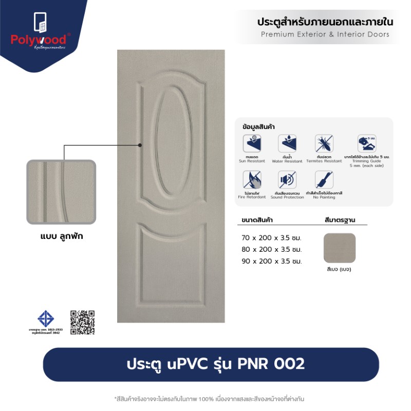 “ประตู uPVC ภายนอก รุ่น Revo-series บานลูกฟัก ผิวเสี้ยนไม้