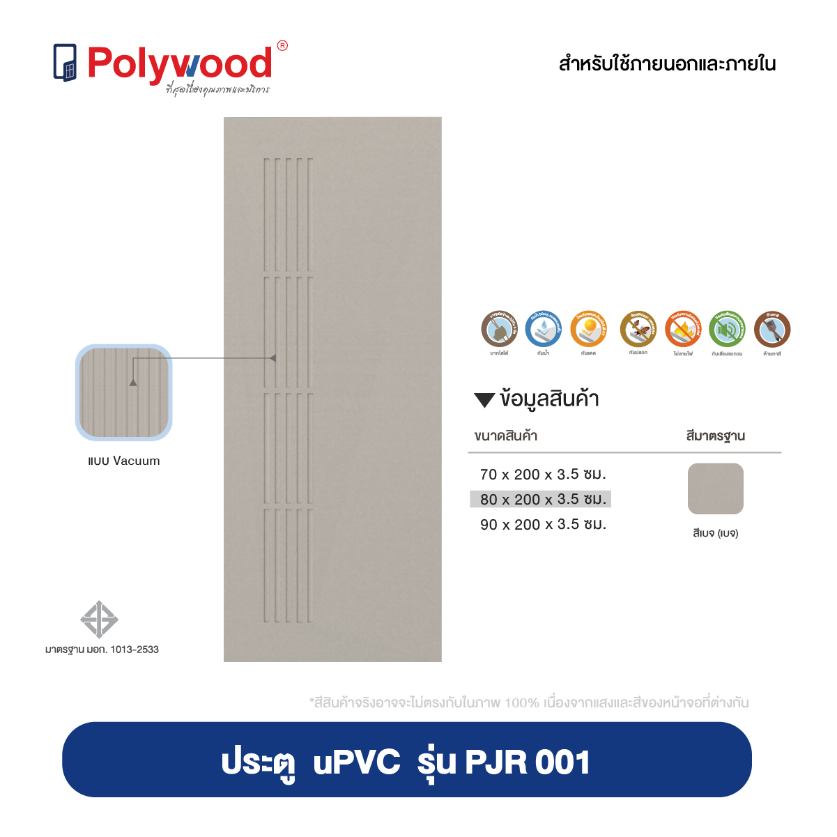 • ใช้งานได้ทั้งเป็นประตูภายนอก ประตูภายใน และประตูห้องน้ำ